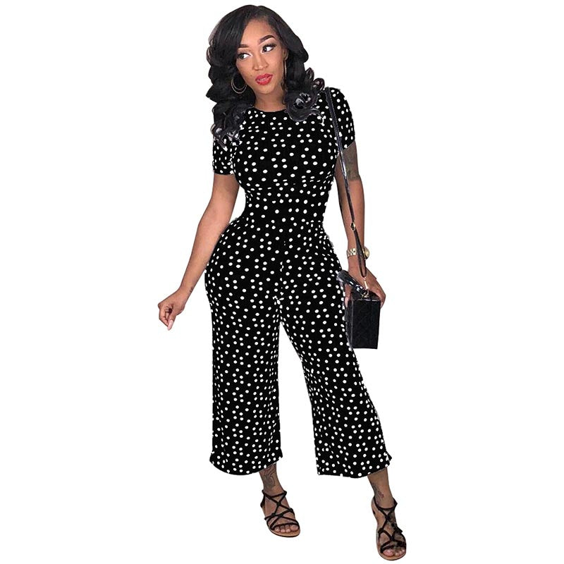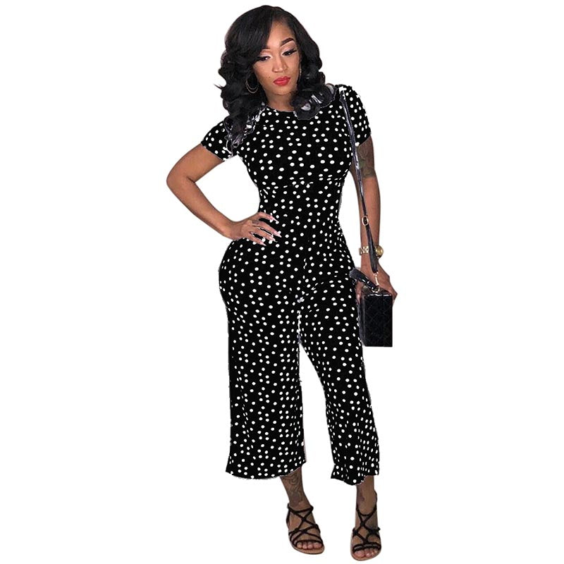 Euramerican Dots Printed Loose Jumpsuit #Short Sleeve #Printed #Dot