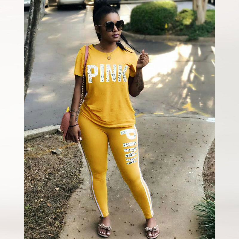 Explosive, Casual, Self-Cultivation, Sexy, Printing, Campaign, Two-Piece Cute Women Peacock Sequined 2 Piece Jogger Pants Set,Explosive Casual Self-Cultivation Sexy Printing Campaign Two-Piece Letter PINK #Sexy Clubwear #Pant Sets #Yellow #Short Sleeve...