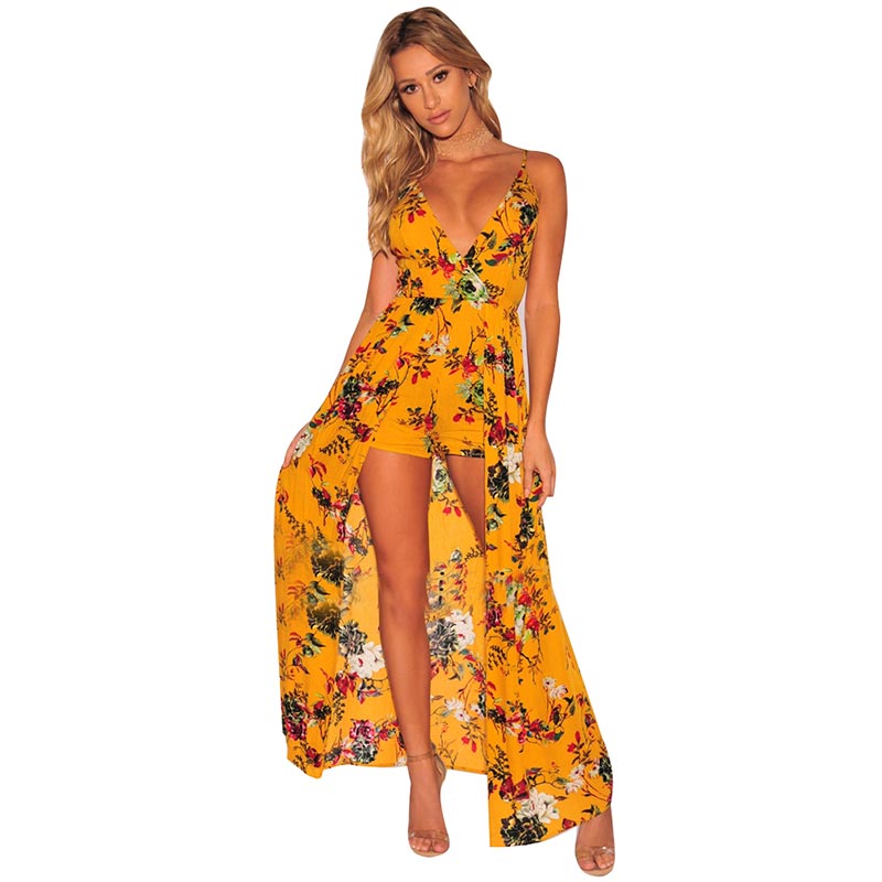 Fashion Floral Faux Wrap Maxi Romper #Maxi Romper