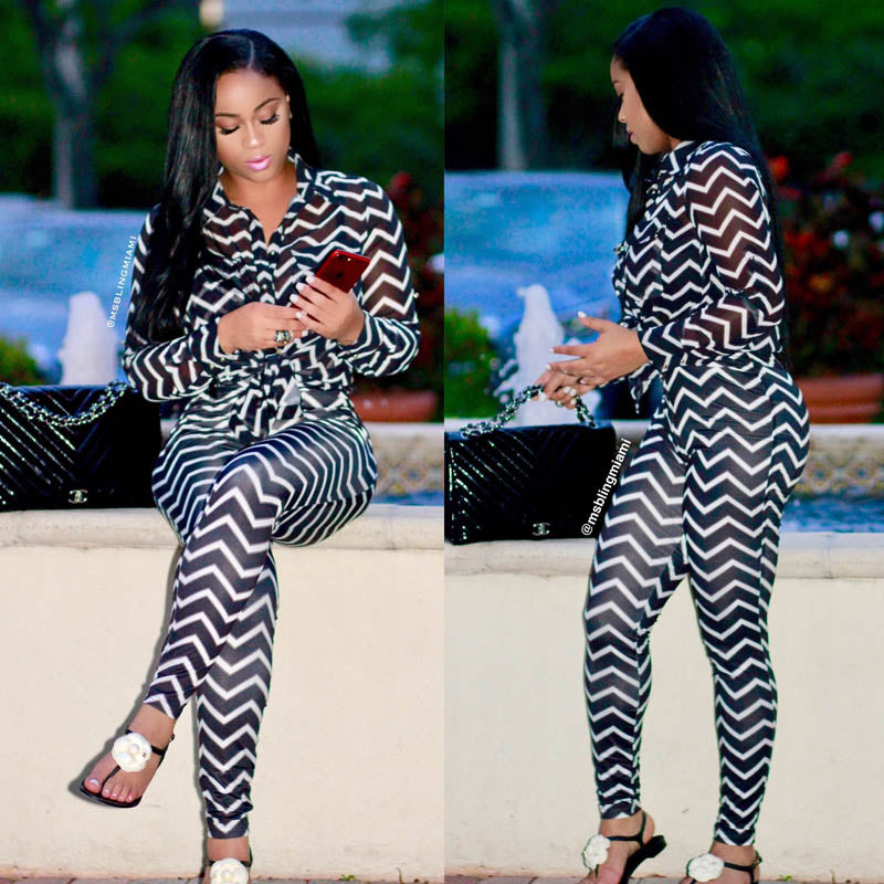You'll fall in love with the chiffon button down blouse and super high waist leggings. Dress it up with heels or dress it down with a pair of cute sandals or sneakers.