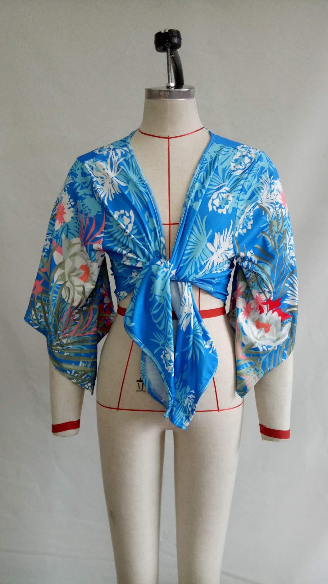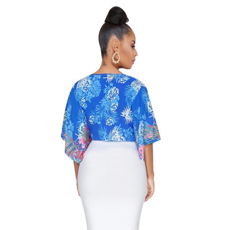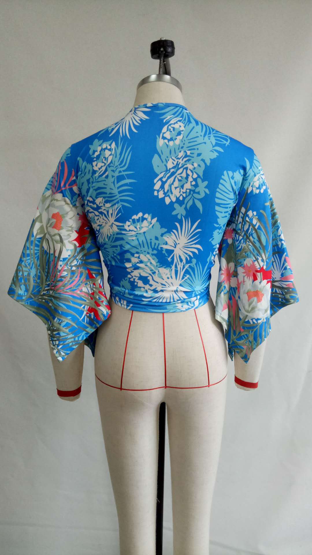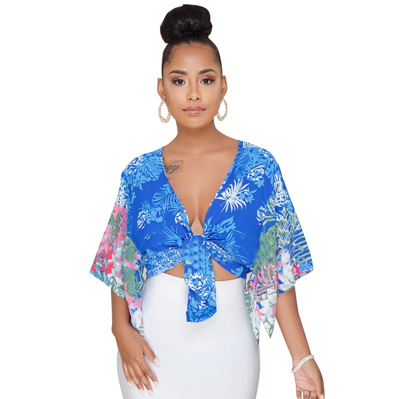 Fashion V Neck Batwing Sleeves Floral Printed Orange Shirts