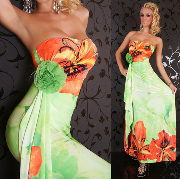 Floral Print Strapless Light Green Maxi Boho Hippie