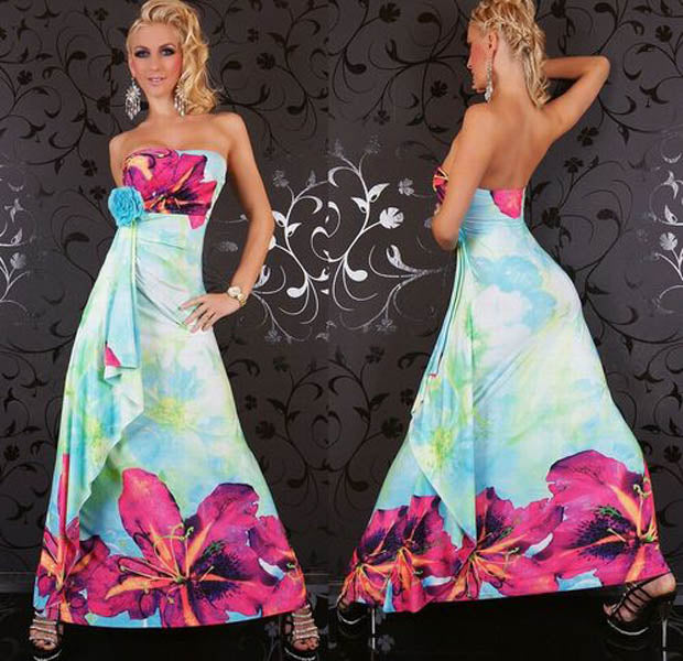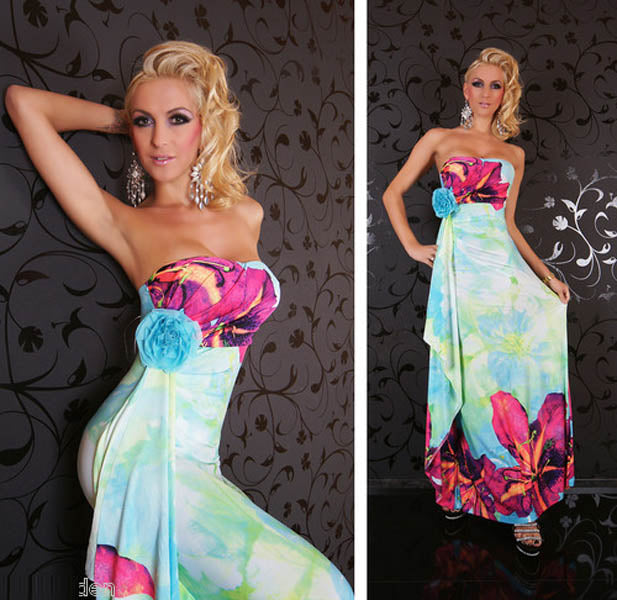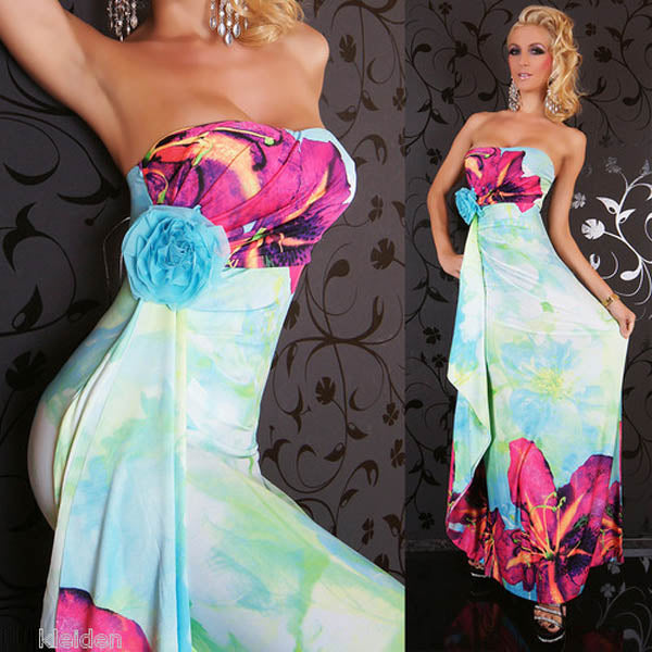 Floral Print Strapless Sky Blue Maxi Boho Hippie