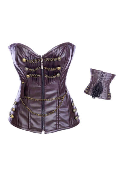 Front Zip Sexy Leather Corset ,Back tie ,comes with G-string .