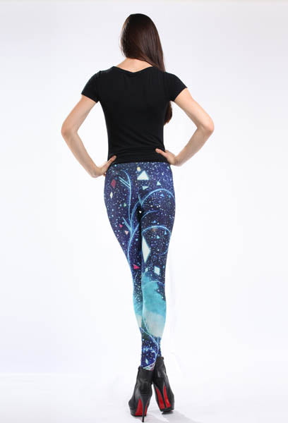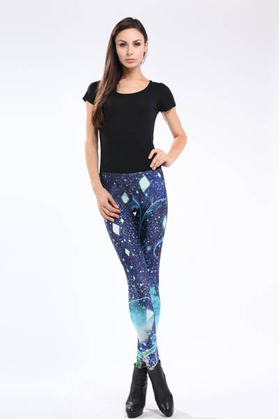 Galaxy Legging is Fit Great. These blue galaxy print leggings will look great with a simple vest top and wedge sandals for a casual look with attitude.