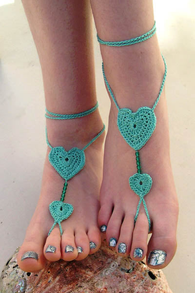 Green Crochet Sweetheart Beaded Barefoot Sandals