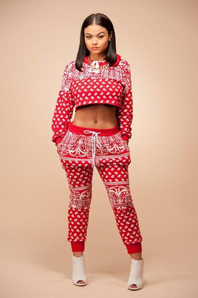 | India Westbrooks Joggers Red Hooded Suits | |||||||