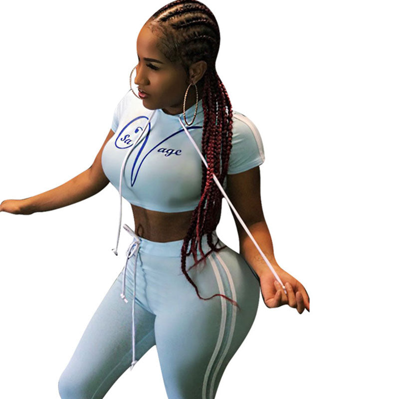 #Sexy Clubwear #Pant Sets #Two Piece #Hooded #Print