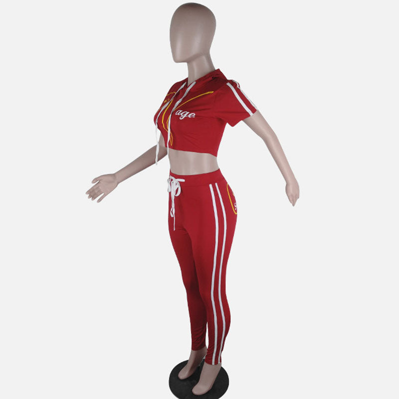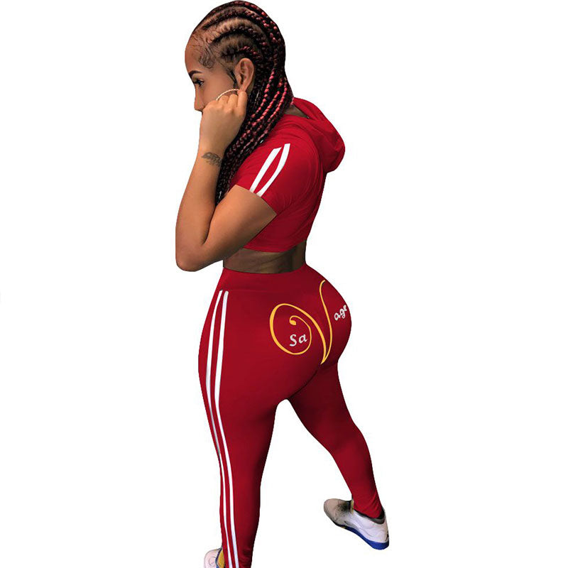 Jogger Print Hooded Two Piece Set,Sexy Print Jogger Hoody and Pants