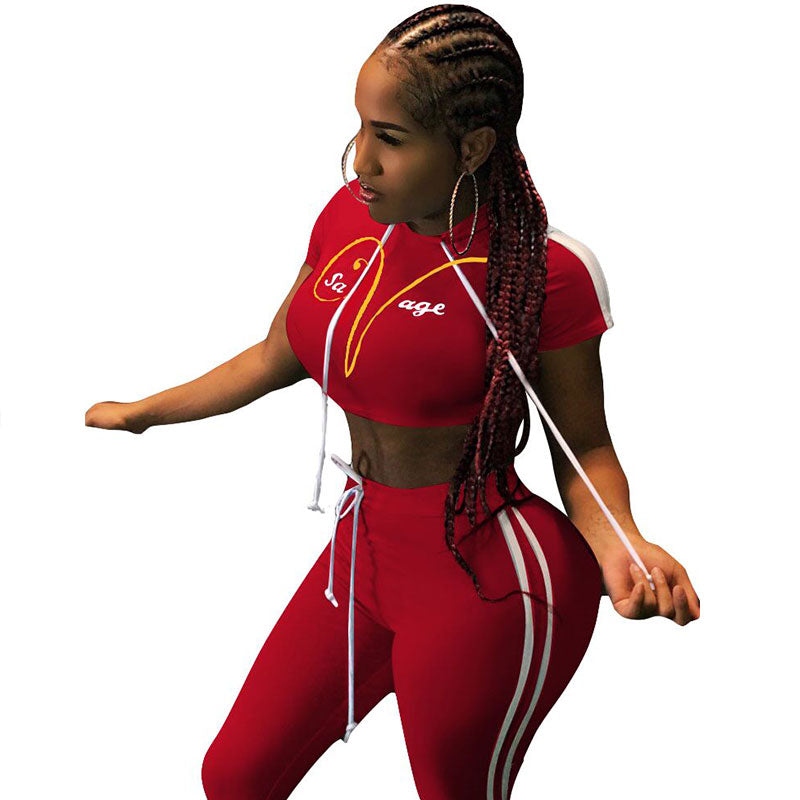 #Sexy Clubwear #Pant Sets #Two Piece #Hooded #Print
