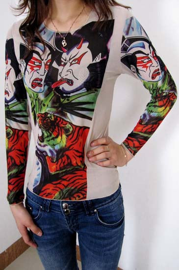 Bravery and ferocity is an enduring theme of tattoo art. This is a Japanese style tattoo T-shirt design that uses the Japanese Ninja (in Kabuki make up) plus a tiger to symbolize power, ferocity and bravery.