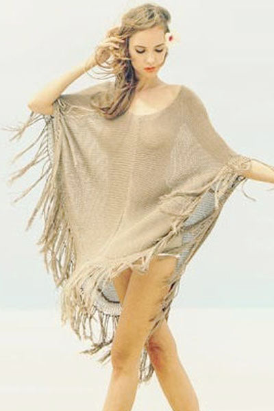 #Sexy Swimwear #Cover-Ups & Beach Dresses Khaki Knit Fringed Poncho Beachwear Color: As Shown Sizes: One Size Sexy Affordable Sexy Swimwear,Cover-Ups & Beach Dresses