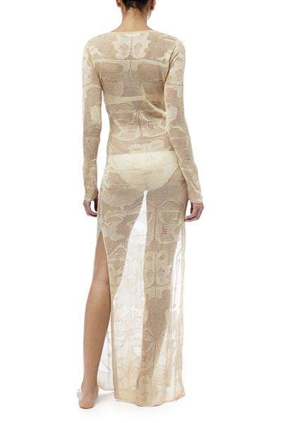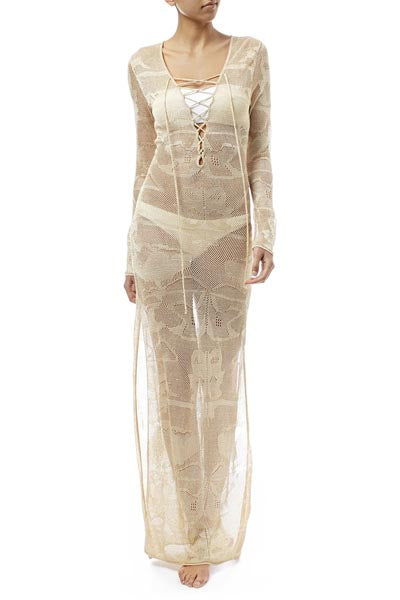 Lace-up and Side Split Lace Maxi Kaftan