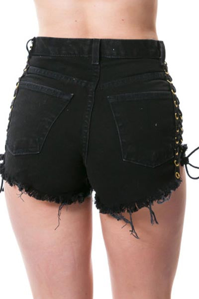 #Women's Clothes #Jeans Laced Up Black Cutoff Shorts Color: Black Sizes: S,M,L,XL,XXL,XXXL Sexy Affordable Women's Clothes,Jeans