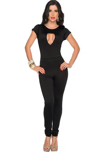 Walk the walk in the Sexy Affordable exclusive Little black Jumpsuit Hottie, featuring a scoop neckline, cap sleeves, fitted torso with attached belted waistband, a bust keyhole cut out, and fitted pant legs.