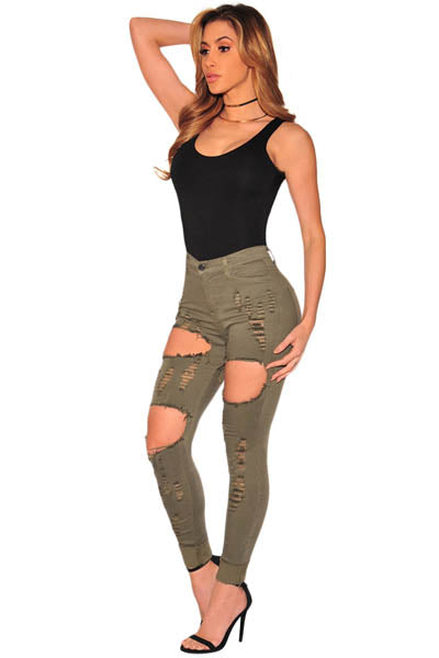 #Women's Clothes #Jeans Olive Destroyed Skinny Jeans Color: Olive Sizes: S,M,L,XL,XXL,XXXL Sexy Affordable Women's Clothes,Jeans