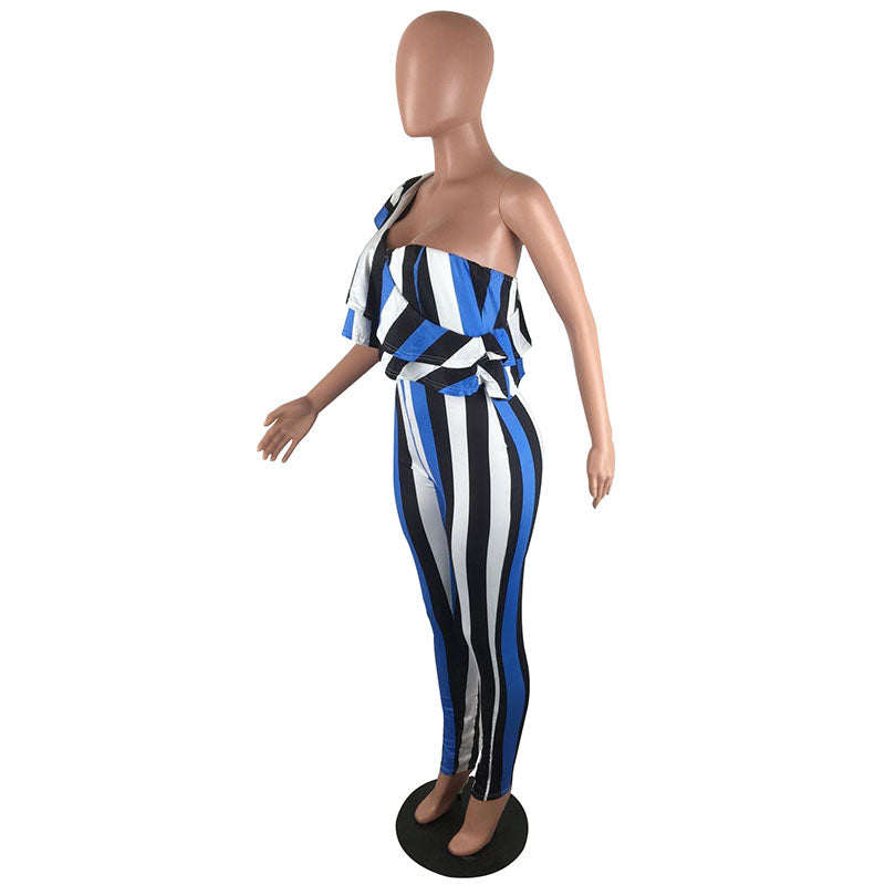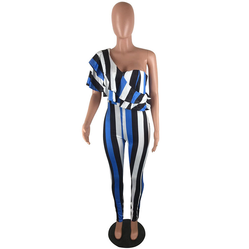 One Shoulder Printed Stripes Sexy Jumpsuits