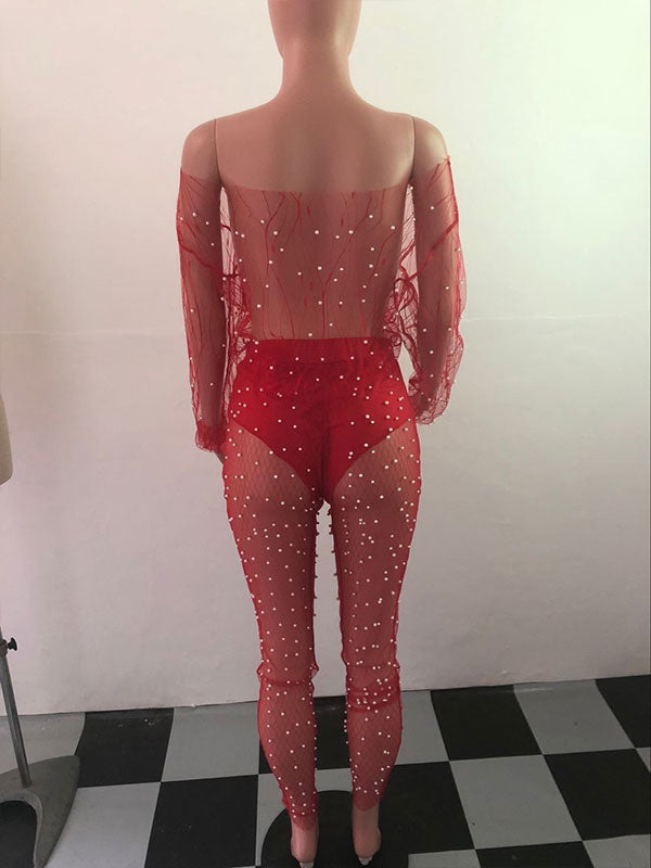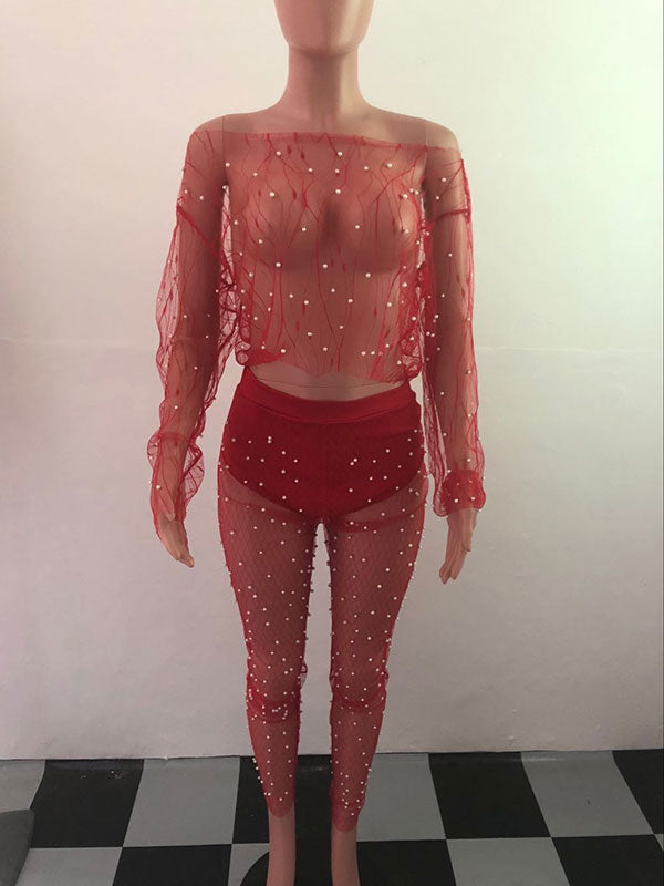 Plain Long Sleeve Off Shoulder Party Regular Set