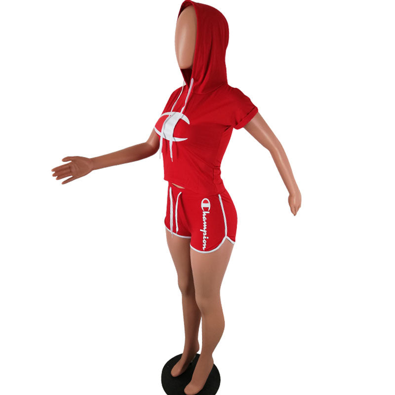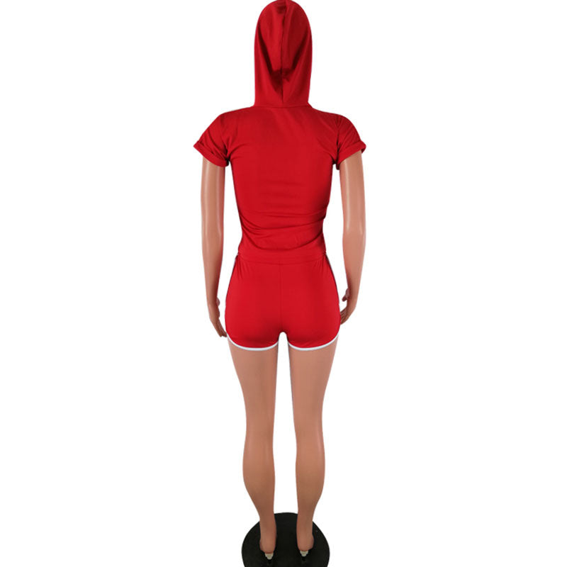 Plus Size Hooded Letter Print Casual Top & Shorts #Short Sleeve #Two Piece #Hooded #Letter