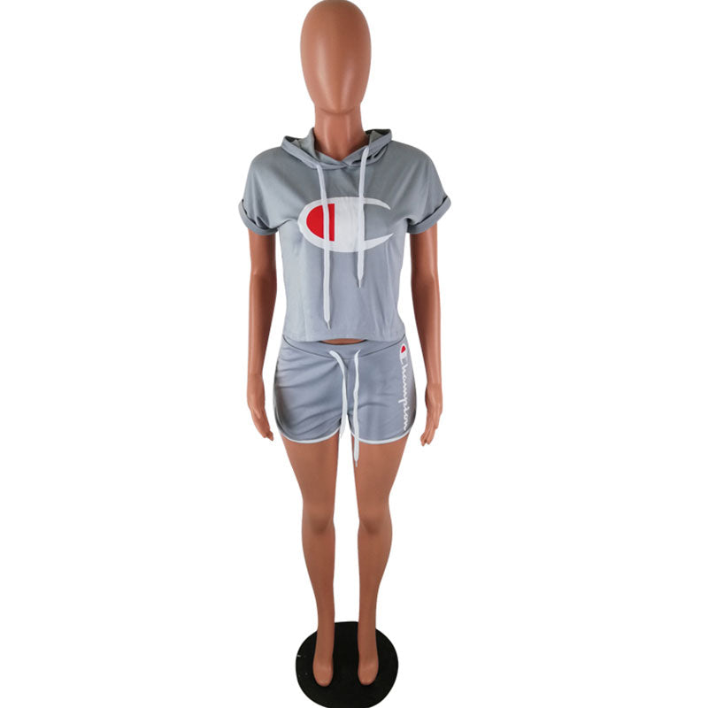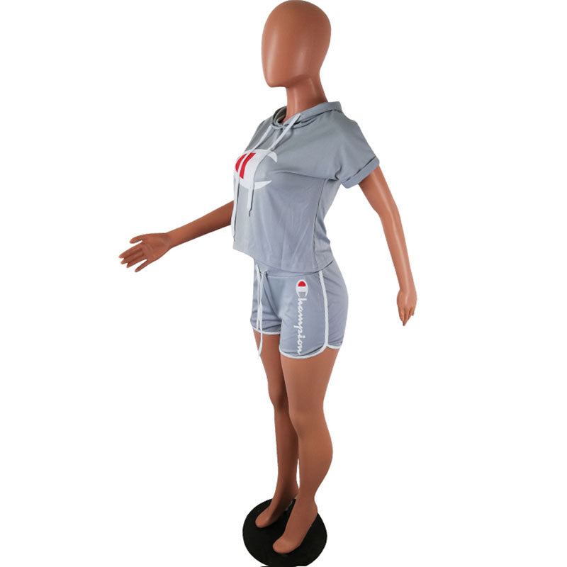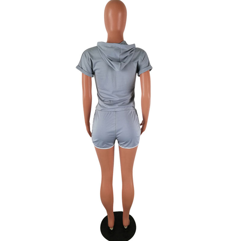 Plus Size Hooded Letter Print Casual Top & Shorts #Short Sleeve #Two Piece #Hooded #Letter