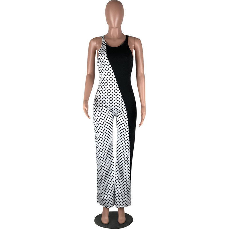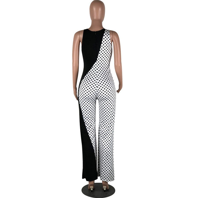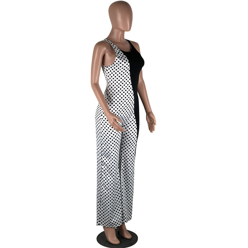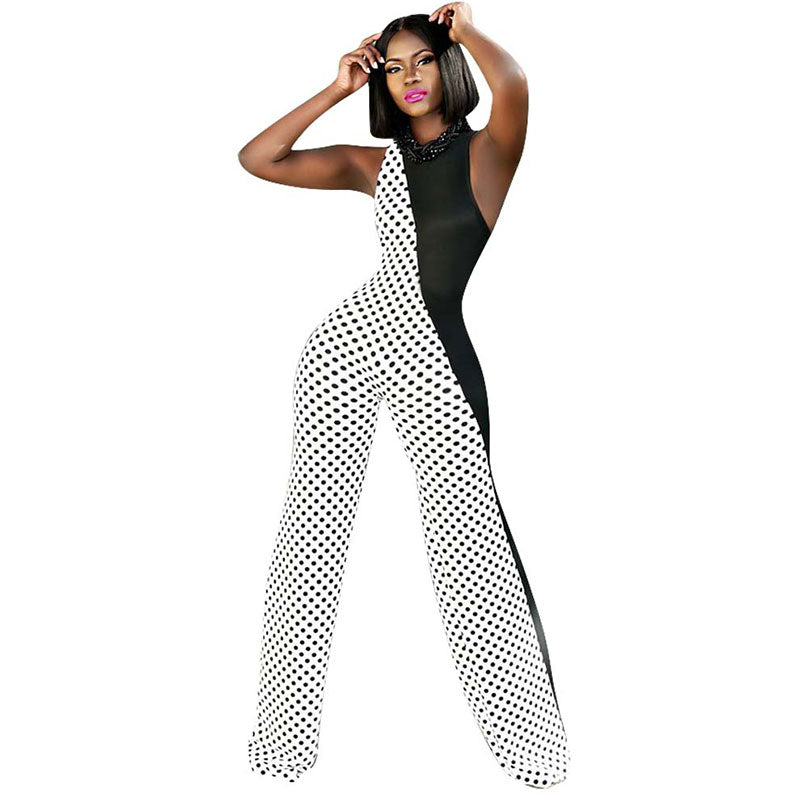 Patchwork Polka Dot Print Party Long Jumpsuit With Wide Leg