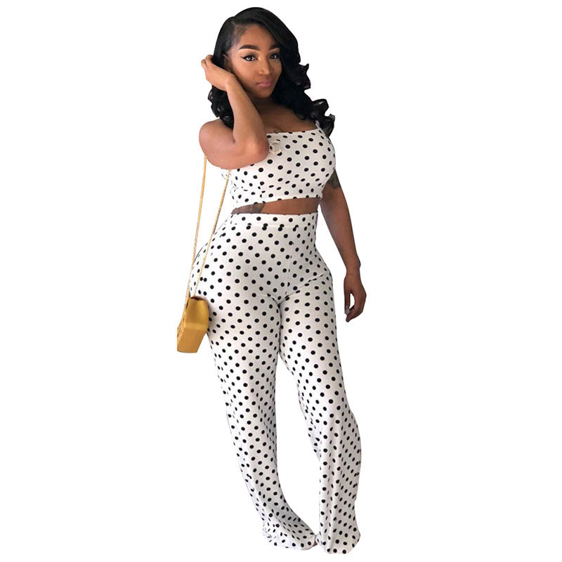 Polka, Dot, Straps, Vest, And, Flares, Trousers Patchwork Lace Bodycon Elegant Formal Two Piece Set,Sexy See-through Printed Skinny Two-piece Pants Set,Plain Long Sleeve Off Shoulder Party Regular Set,Slash Shoulder Beaded Club...