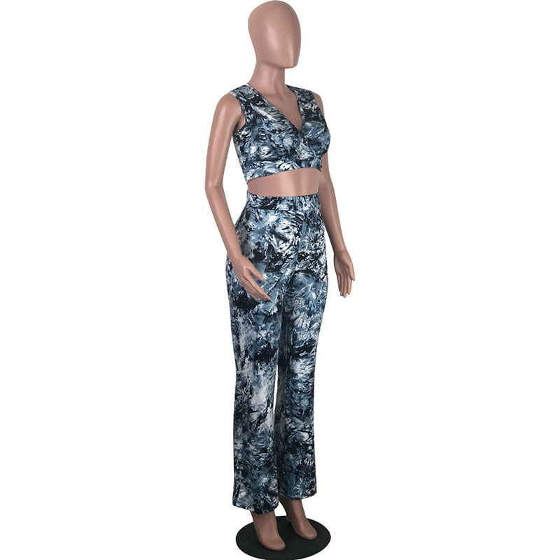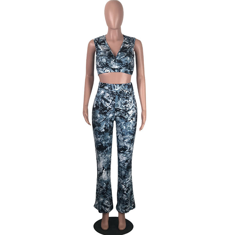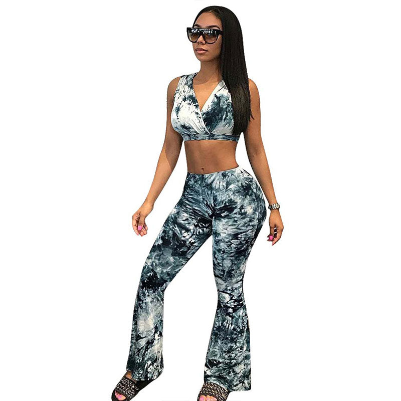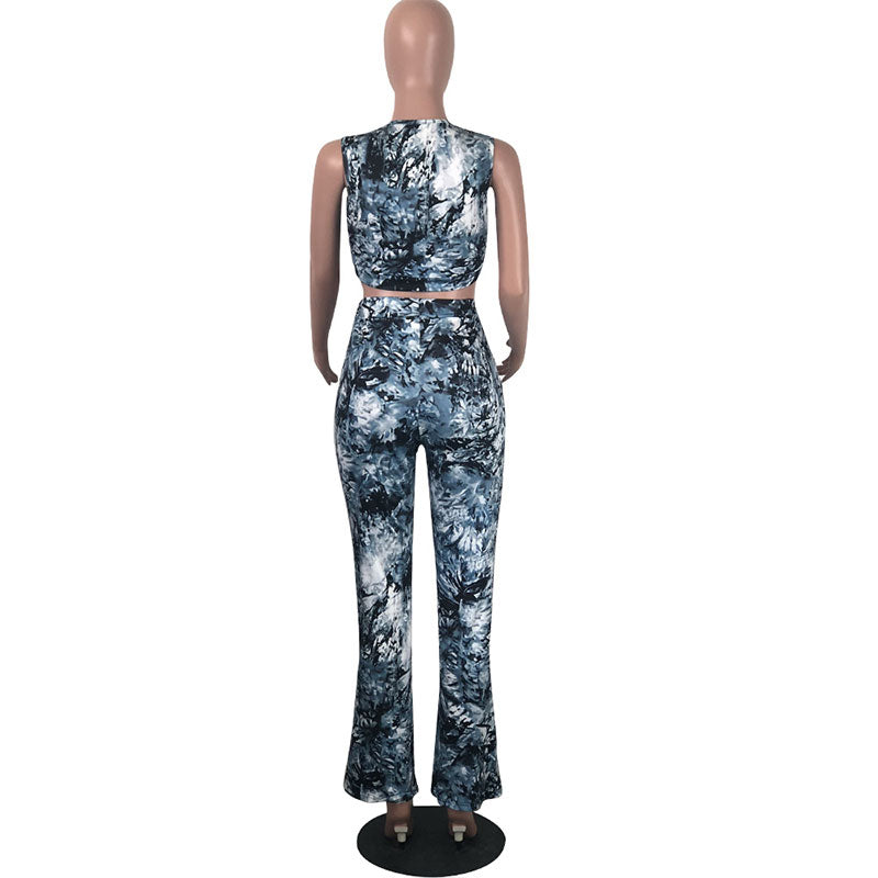 Printed, Vest, And, Flared, Pants Fashion Patchwork Multicolor Two-piece Pants Set,Irregular Printed Short Two-piece Set,Printed Vest And Flared Pants #Sexy Clubwear #Pant Sets #Vest #Two Piece #Printed Printed Vest And Flared...