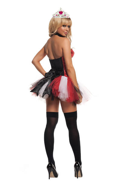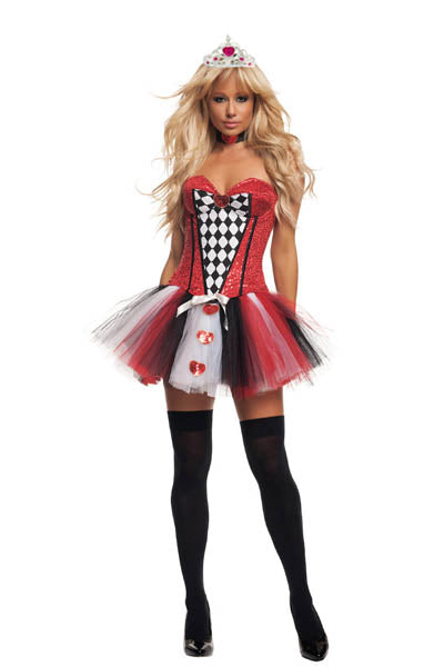 Wear this Women's Feisty Queen of Hearts Costume and you can order the beheading of the fool who planted the WRONG color of roses, and then compounded the error by trying to paint them the right color to cover the mistake. Add black thigh-high stockings and sexy shoes to finish off your look.