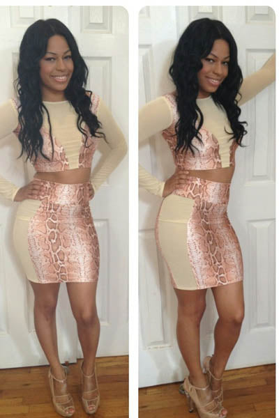 Rosy Snakeskin High Waist Skirt Set