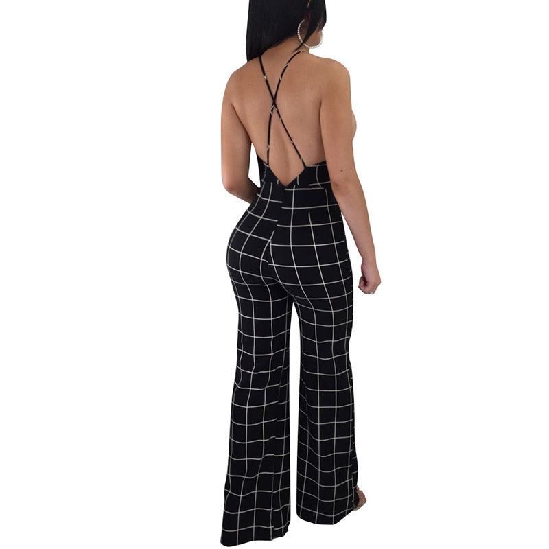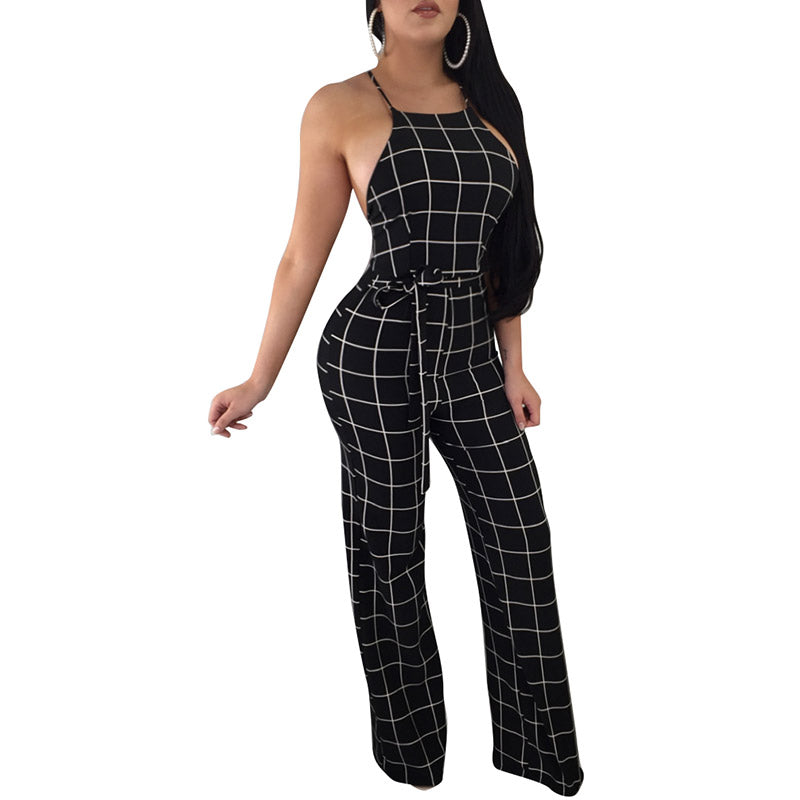 Sexy Checks Halter Plaid Jumpsuit With Open Back