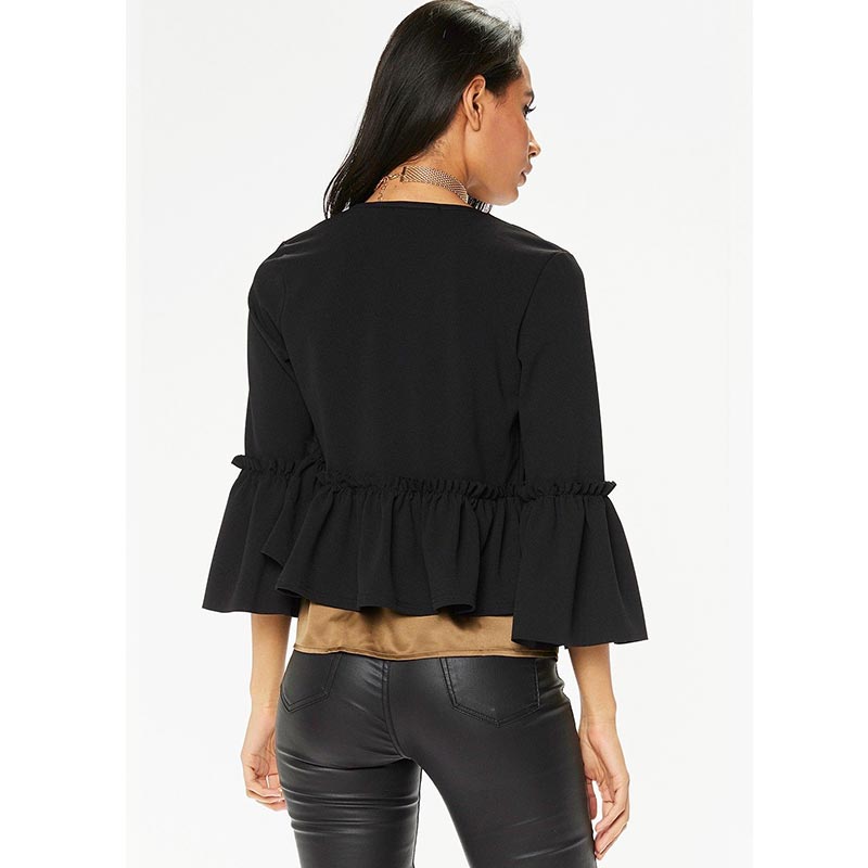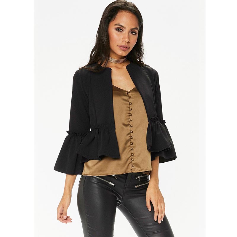 Solid Color, Puff Sleeves, Ruffle Swing Style, Open Front Jacket, Perfect for Spring, Summer and Autumn.